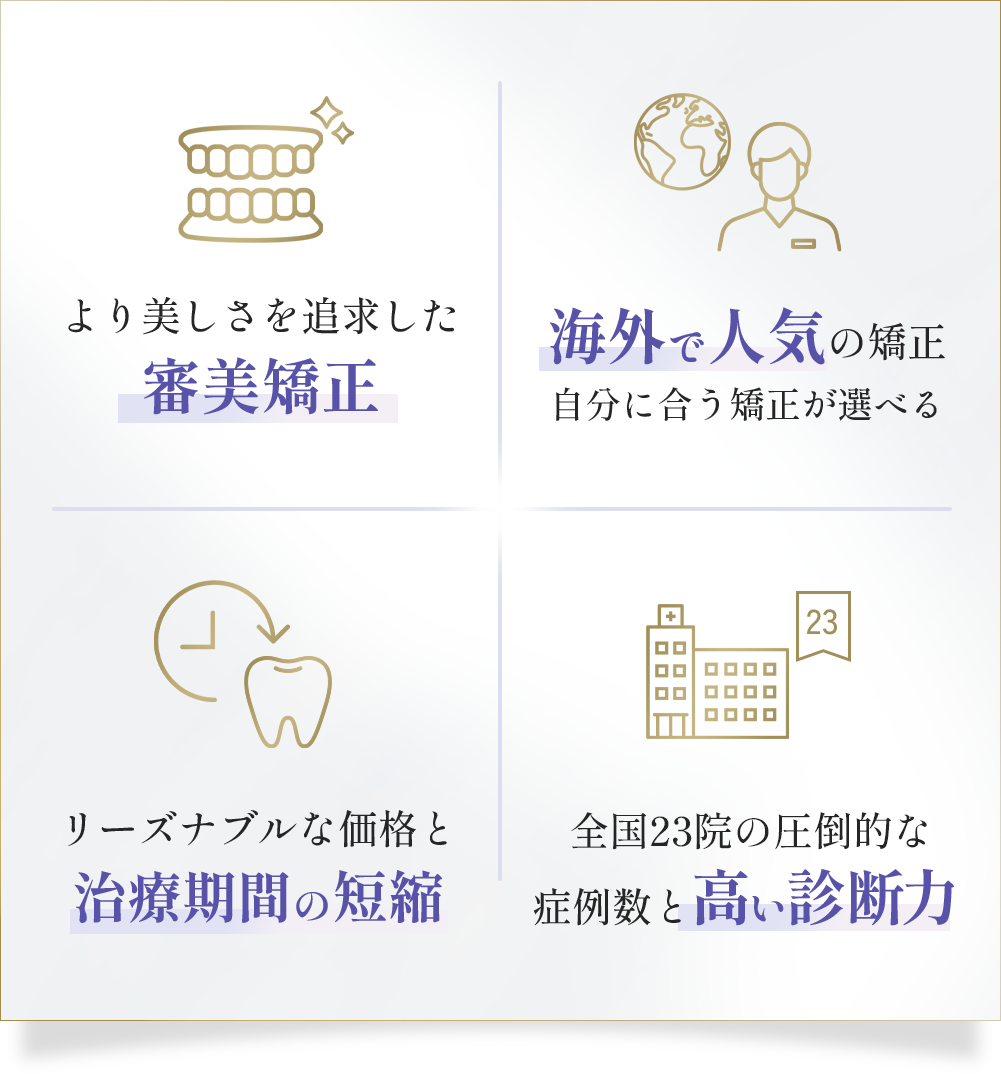 高い技術力だけでなく、安心して患者様に矯正治療を受けていただけるよう経験豊富なドクターやスタッフ全員が患者様の立場に立ち、