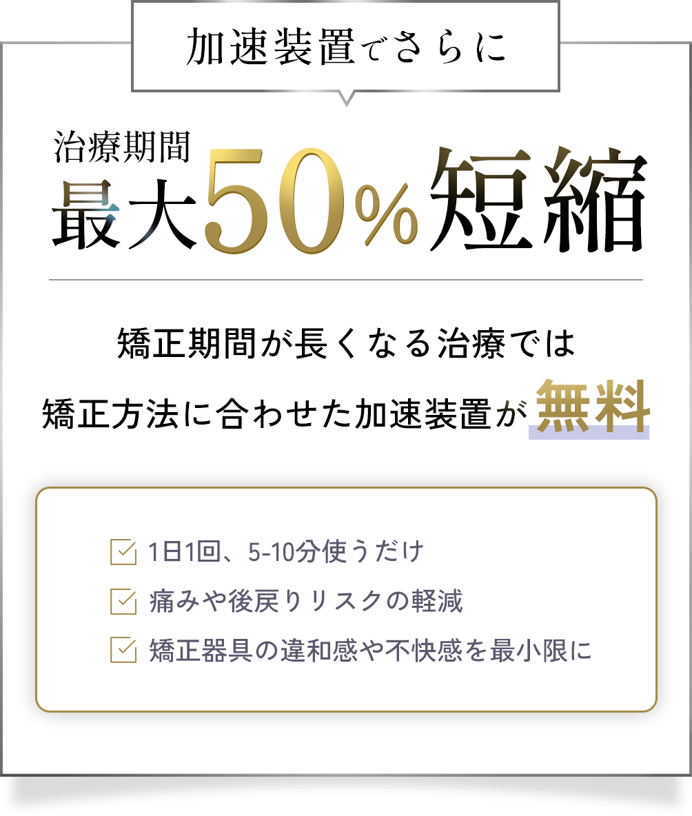 ※加速装置の無料提供は初回検診当日契約の場合に限ります。