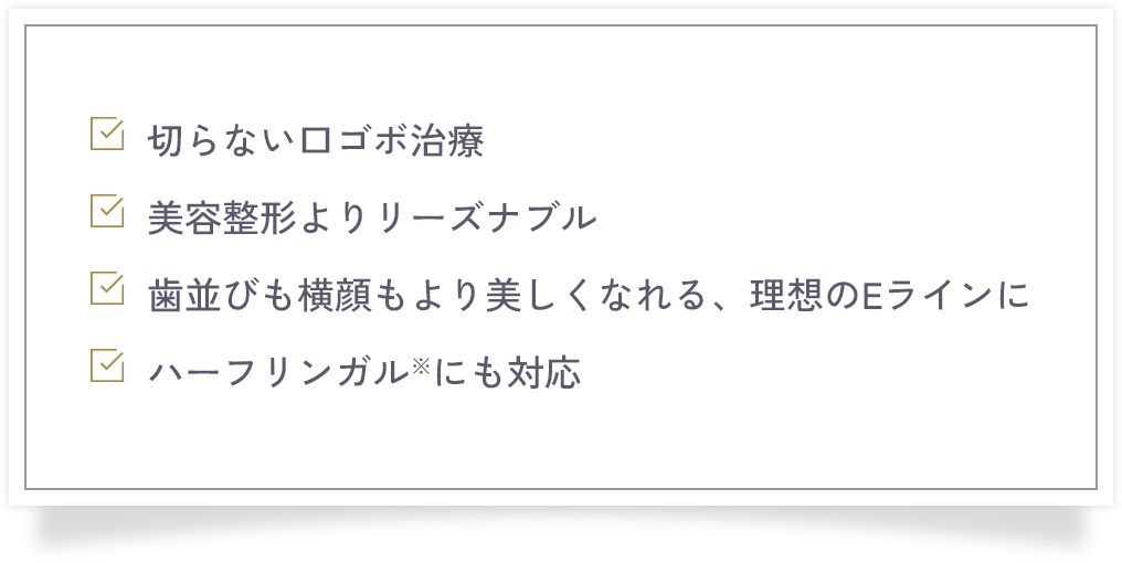 美容大国韓国でも知名度の高いクリニックの一つであるバノバギ美容外科専属ドクターとタッグを組み、「口ゴボ治療」に特化した矯正治療も導入しています。