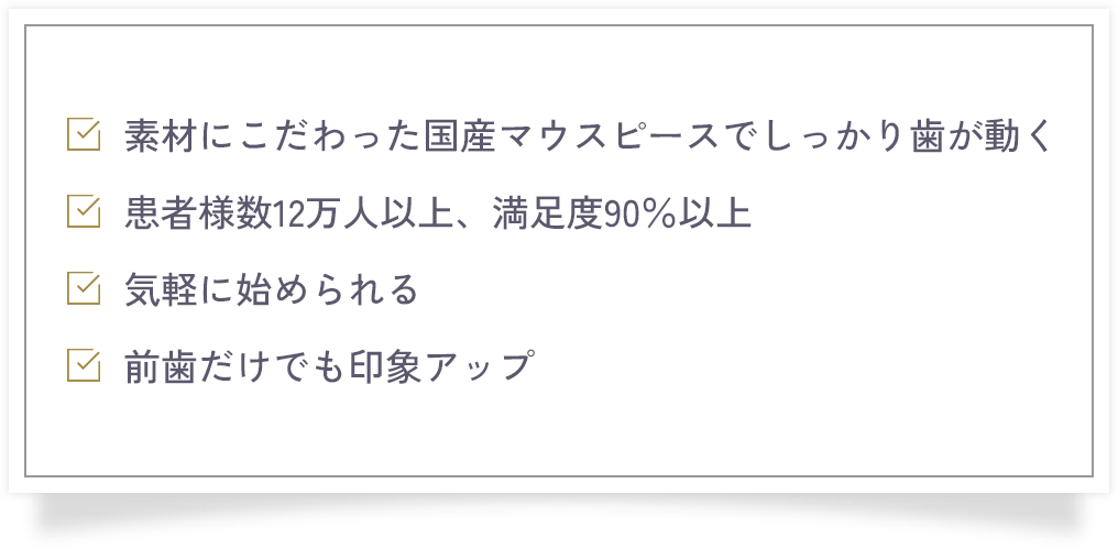 当クリニックでは手が届く価格設定にこだわり、矯正治療のハードルを下げることで、より多くの方が矯正治療を受け、健康的で美しい口元をめざせるように取り組んでいます。